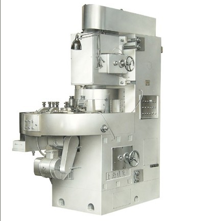 本機床為立式圓盤送料雙端面磨床,專供手表行業(yè)磨削手表主夾板、支夾板等大批量生產使用。 結構特征: a、送料盤為直流電機可控硅無級調速,變速范圍為2-8轉/分,適應各種大小夾板磨削變速使用,調換料盤極為方便。 b、機床具有自動補償機構,液壓砂輪修整器,自動下料箱,內冷卻裝置等。 c、本機床的主參數(shù)為特殊設計,砂輪直徑為φ457毫米,與進口砂輪(18”)通用,料盤也與現(xiàn)有手表廠使用夾板磨床通用,機床效率高、精度好,操作方便。 d、本機床附帶男表主夾板、支夾板料盤,女表主夾板,支夾板料盤,可特殊提出訂貨。 主要技術規(guī)格及參數(shù):